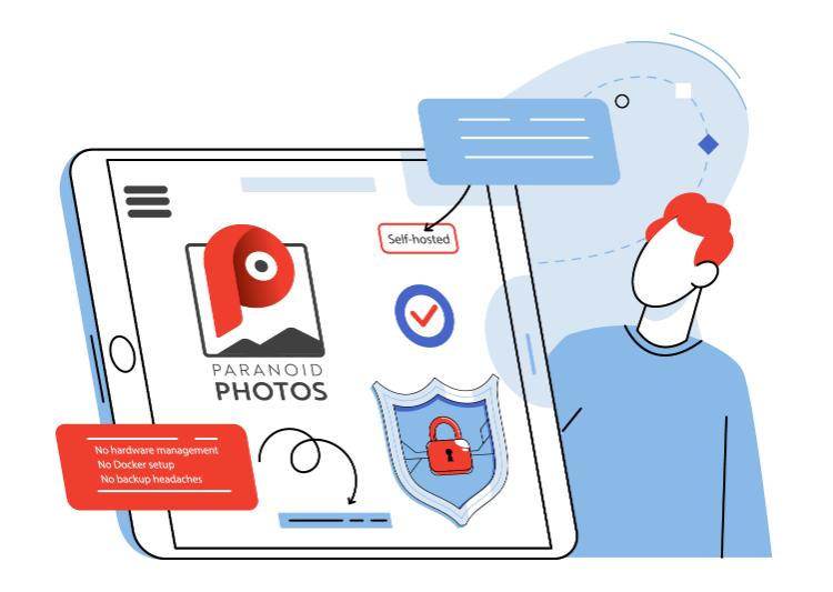 Paranoid Photos gives you cloud ease without handing over access. No hardware management, no Docker setup, no backup headaches. Sign in, upload photos, done. They're locked to you and nobody else.